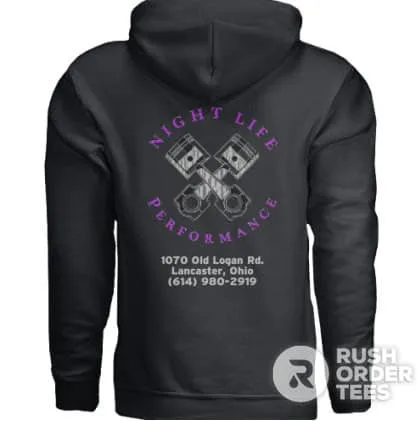 Stay warm with the Night Life Performance Hoodie. Crafted from premium, soft fleece, this hoodie offers ultimate comfort and durability. With its bold NLP logo and practical design, it's perfect for those chilly nights in the garage or casual outings.
